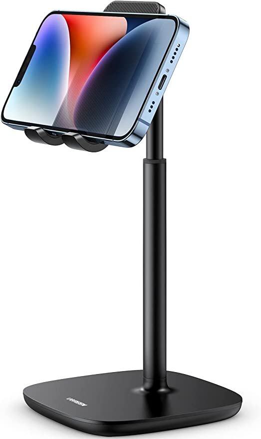 • حامل الجوال بارتفاع قابل للتعديل هو جهاز يُستخدم لدعم الهواتف الذكية أو الأجهزة اللوحية بطريقة تجعلها مرتفعة على سطح مستوٍ. يتميز هذا الحامل بإمكانية تعديل ارتفاعه وزاويته بحيث يمكنك ضبطه وفقًا لاحتياجاتك ورؤيتك. يُستخدم حامل الجوال بارتفاع قابل للتعديل في العديد من السيناريوهات.